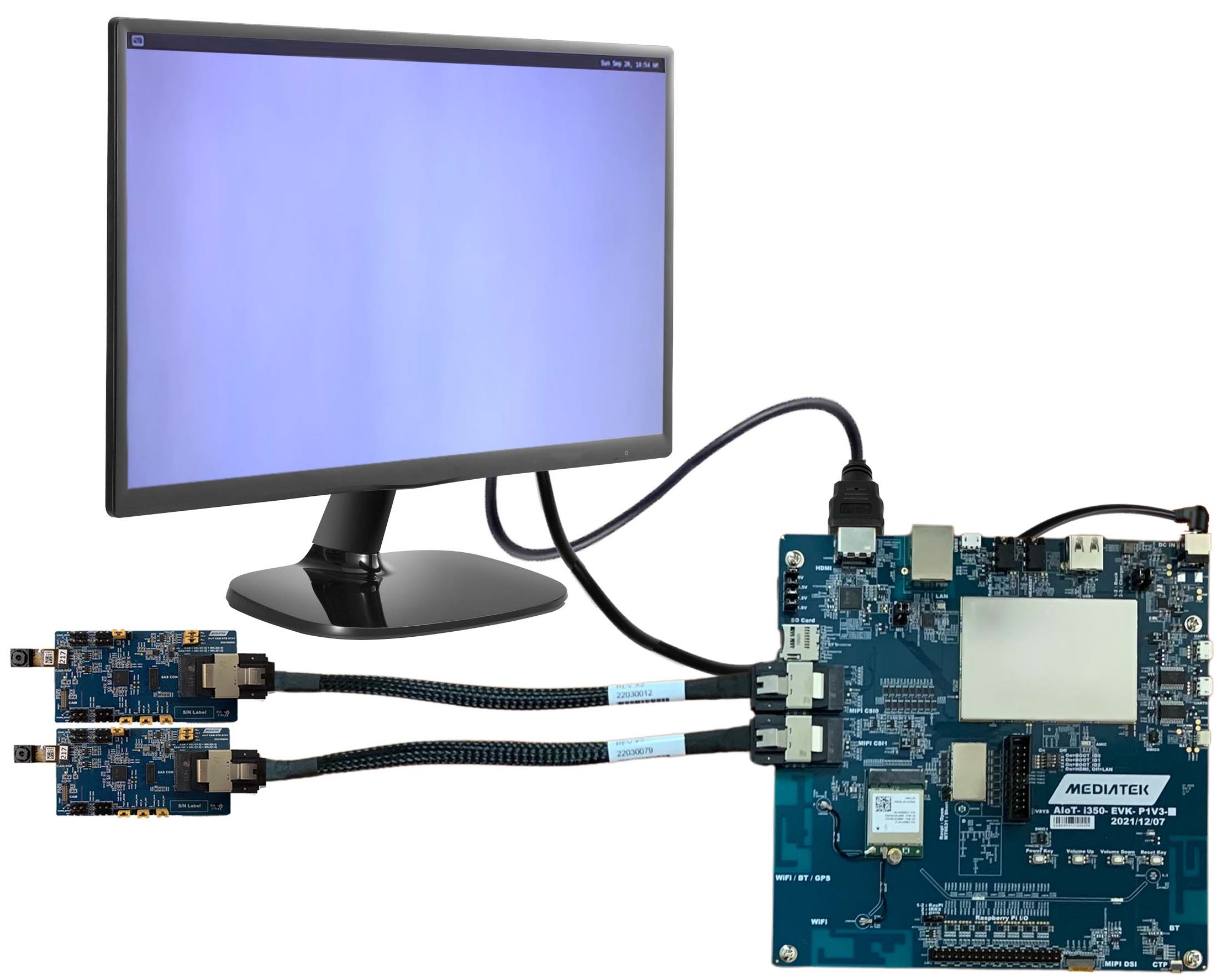The Genio 350-EVK Yocto Demo uses an imaging configuration using the Onsemi AR0430 and the Onsemi AP1302.
