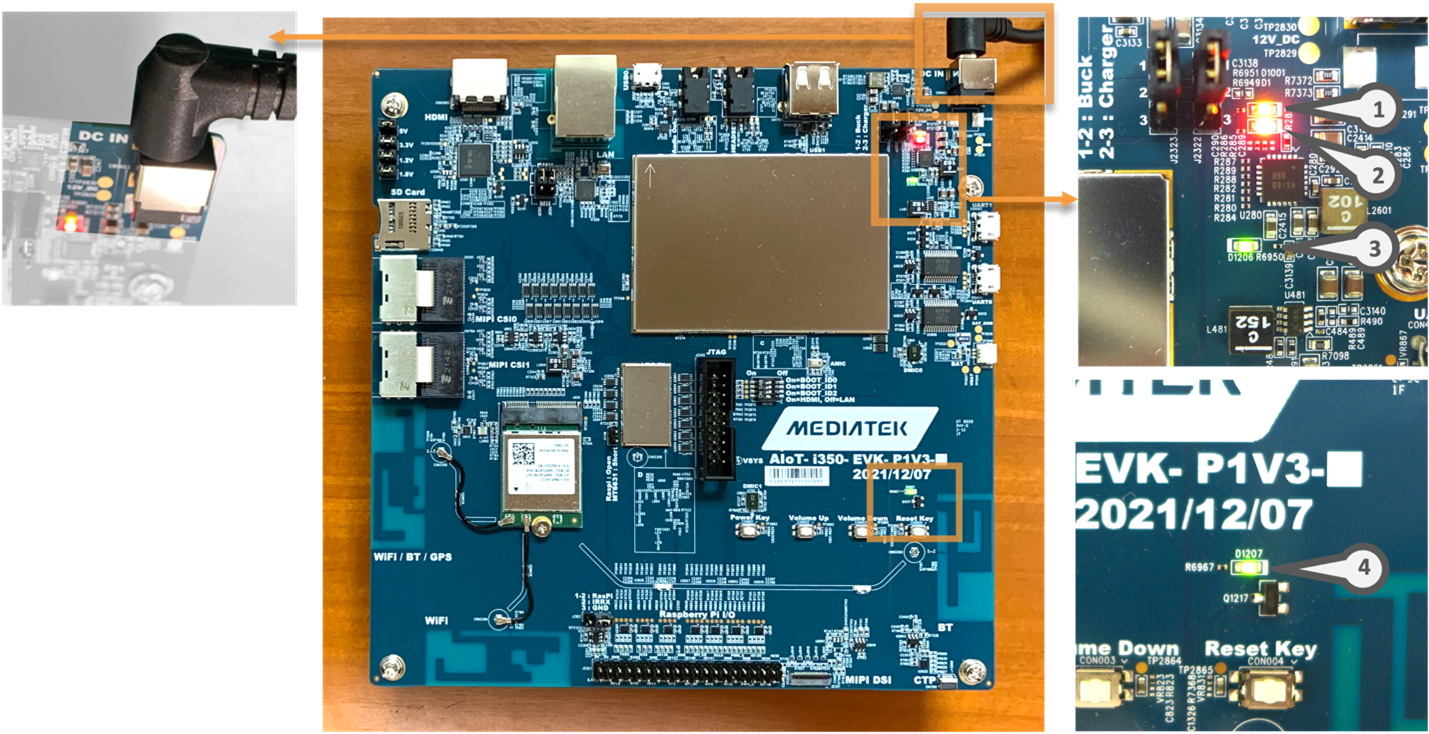 After the EVK power is turned on, confirm that the four LED indicators illuminate.
