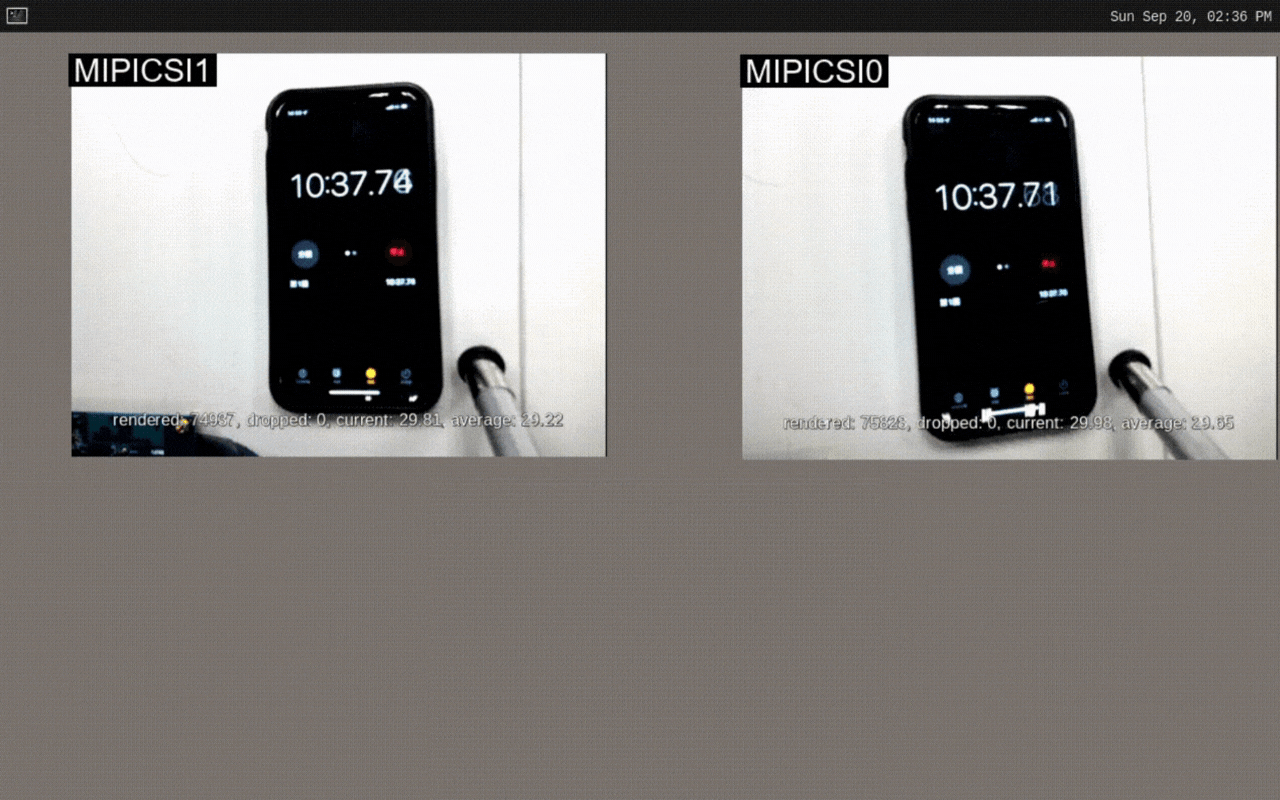 Using the video device nodes determined above, use the gst-launch-1.0 command to cause the cameras to display live video on the HDMI monitor.