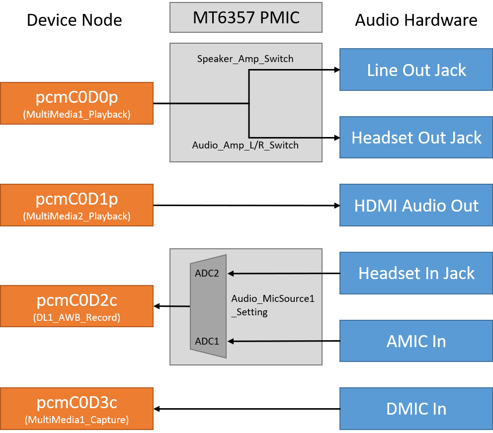 amixer cset -c mtsndcard name='Audio_Amp_L_Switch' 1 amixer cset -c mtsndcard name='Audio_Amp_R_Switch' 1 amixer cset -c mtsndcard name='Speaker_Amp_Switch' 0