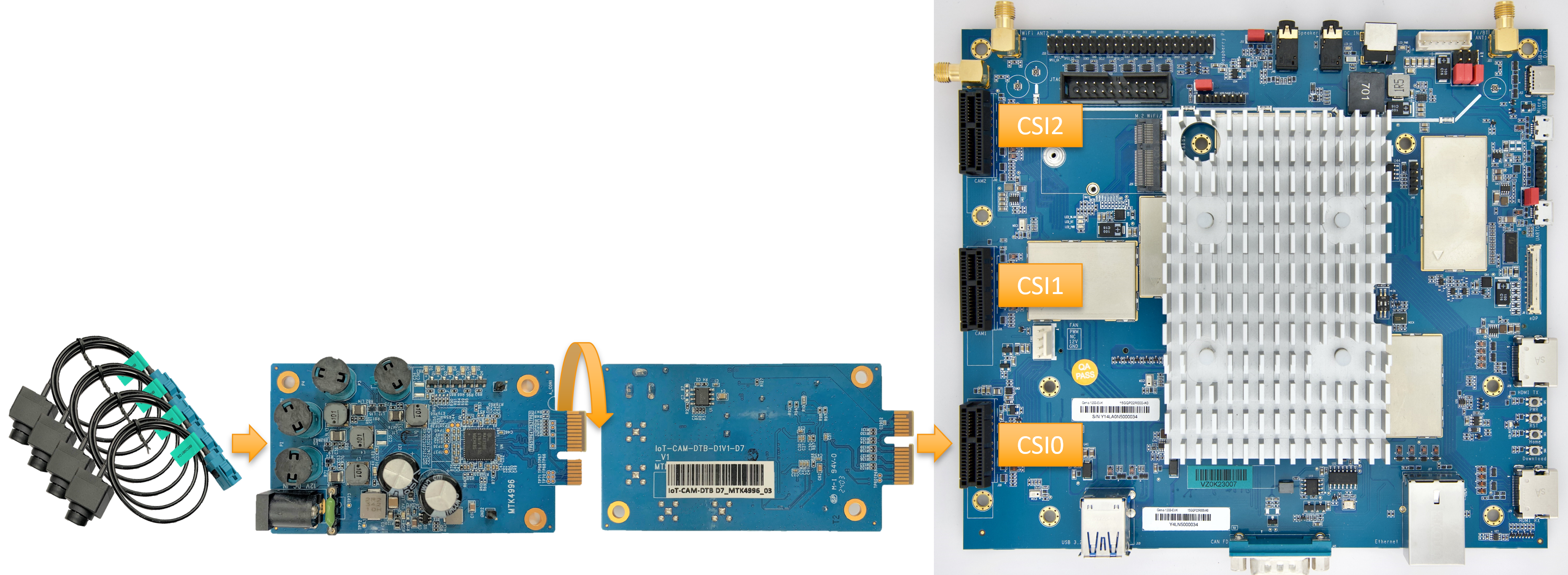 There are 3 MIPI-CSI sockets on Genio 1200-EVK, which are CSI0