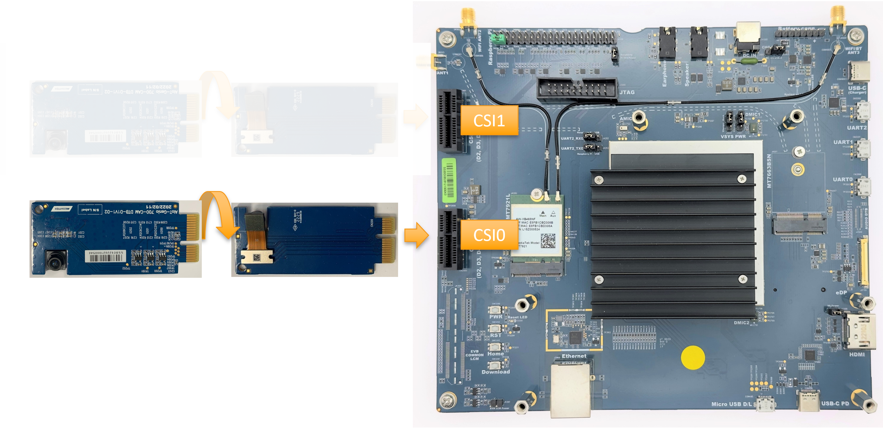 There are 2 MIPI-CSI slots on Genio 510/700-EVK, which are CSI0