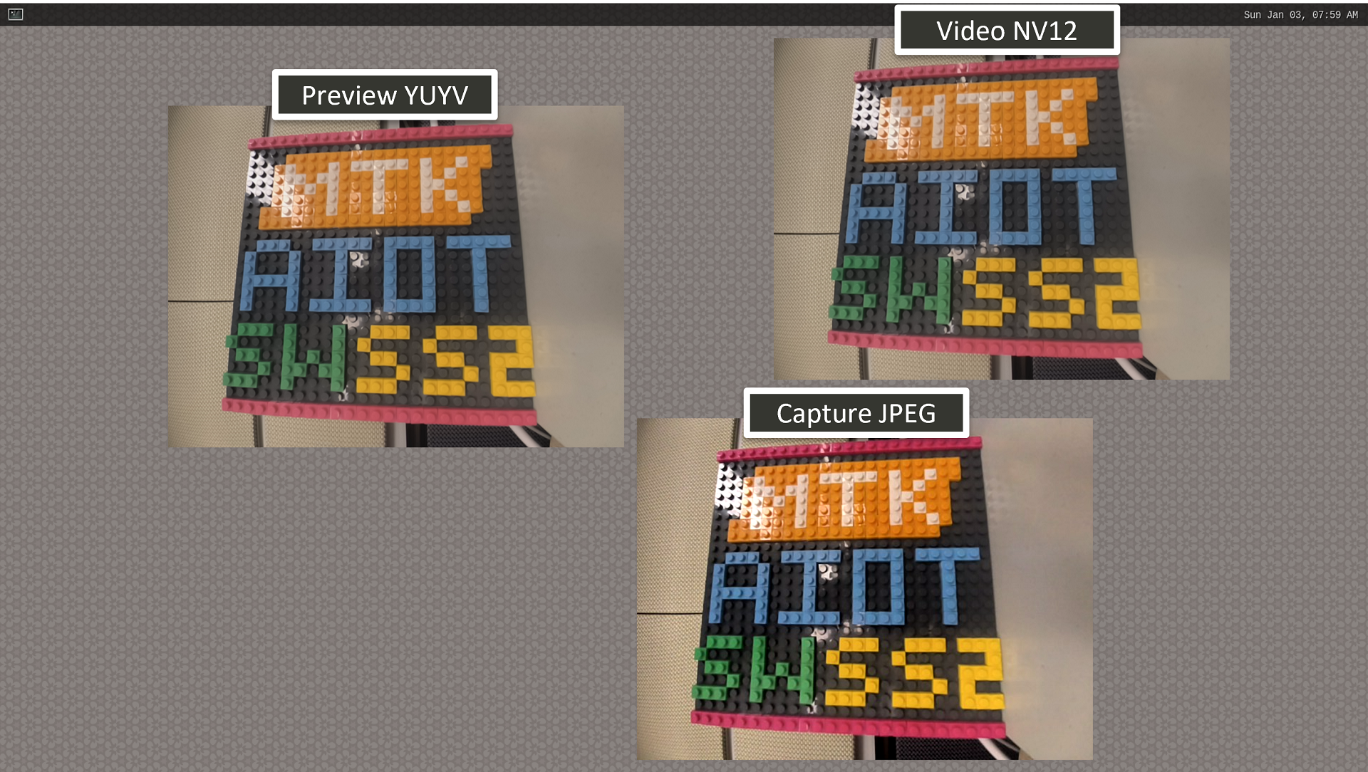 The Preview and Video streams can deliver images in YUV and RGB formats. The Capture stream is for JPEG outputs. The Capture stream is used to fetch the image that the user sees on the Preview or Video stream. The 3A configuration of the Capture stream relies on the Preview or Video stream. Therefore, before starting the Capture stream, make sure one of the Preview and Video streams is running.