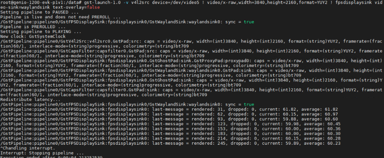 gst-launch-1.0 -v v4l2src device=/dev/video5 num-buffers=600 ! video/x-raw,width=3840,height=2160,format=NV12 ! queue ! \