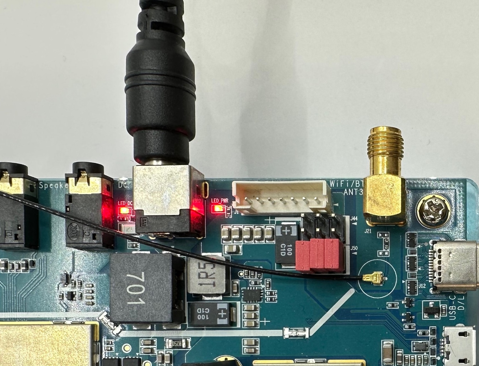 . Once connected to power source, the LED_DC and LED_PWR LEDs should light up, as shown below:Connecting to 12V DC power