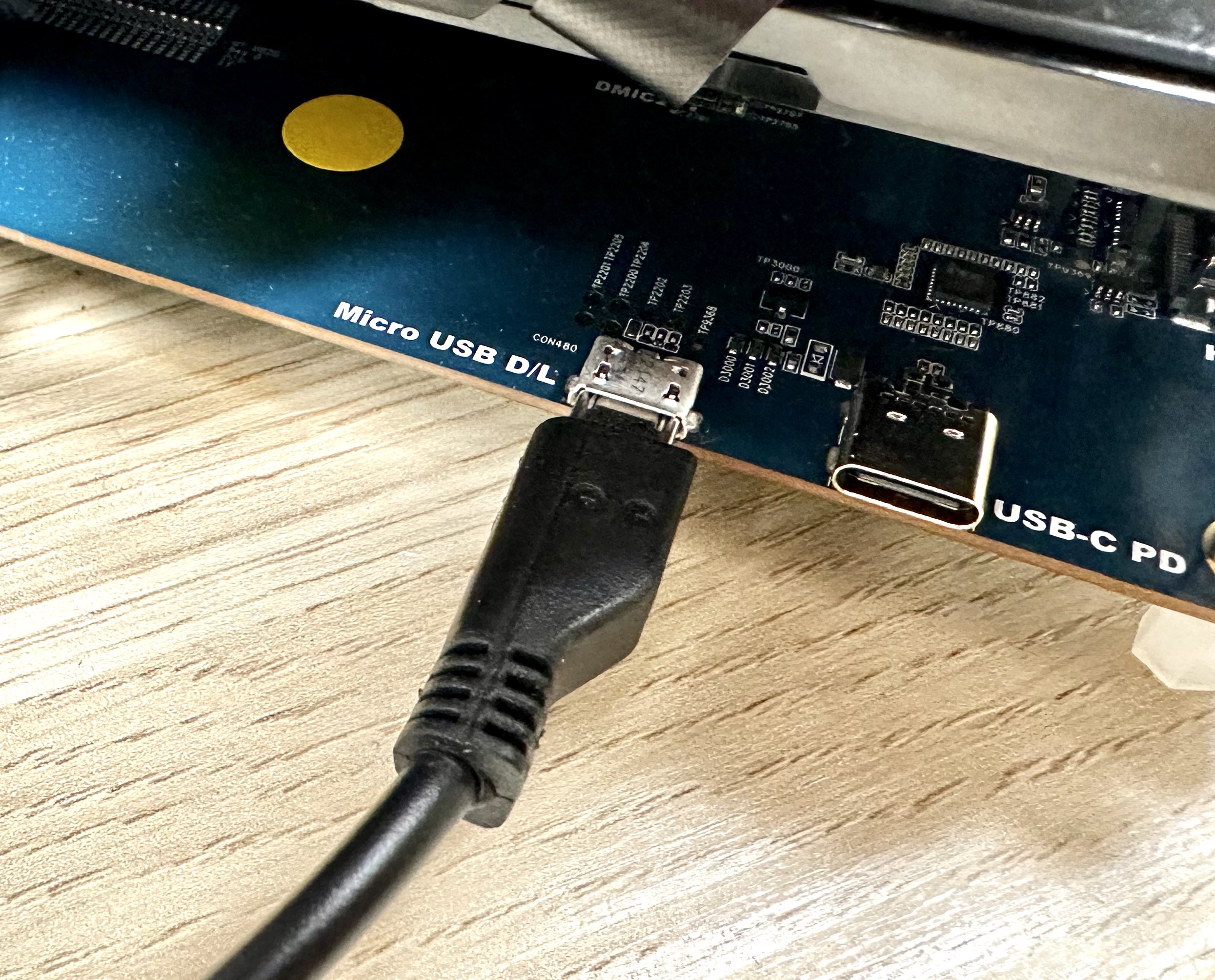 .Connect a Type-C USB cable between the host PC and the USB0 connector labeled