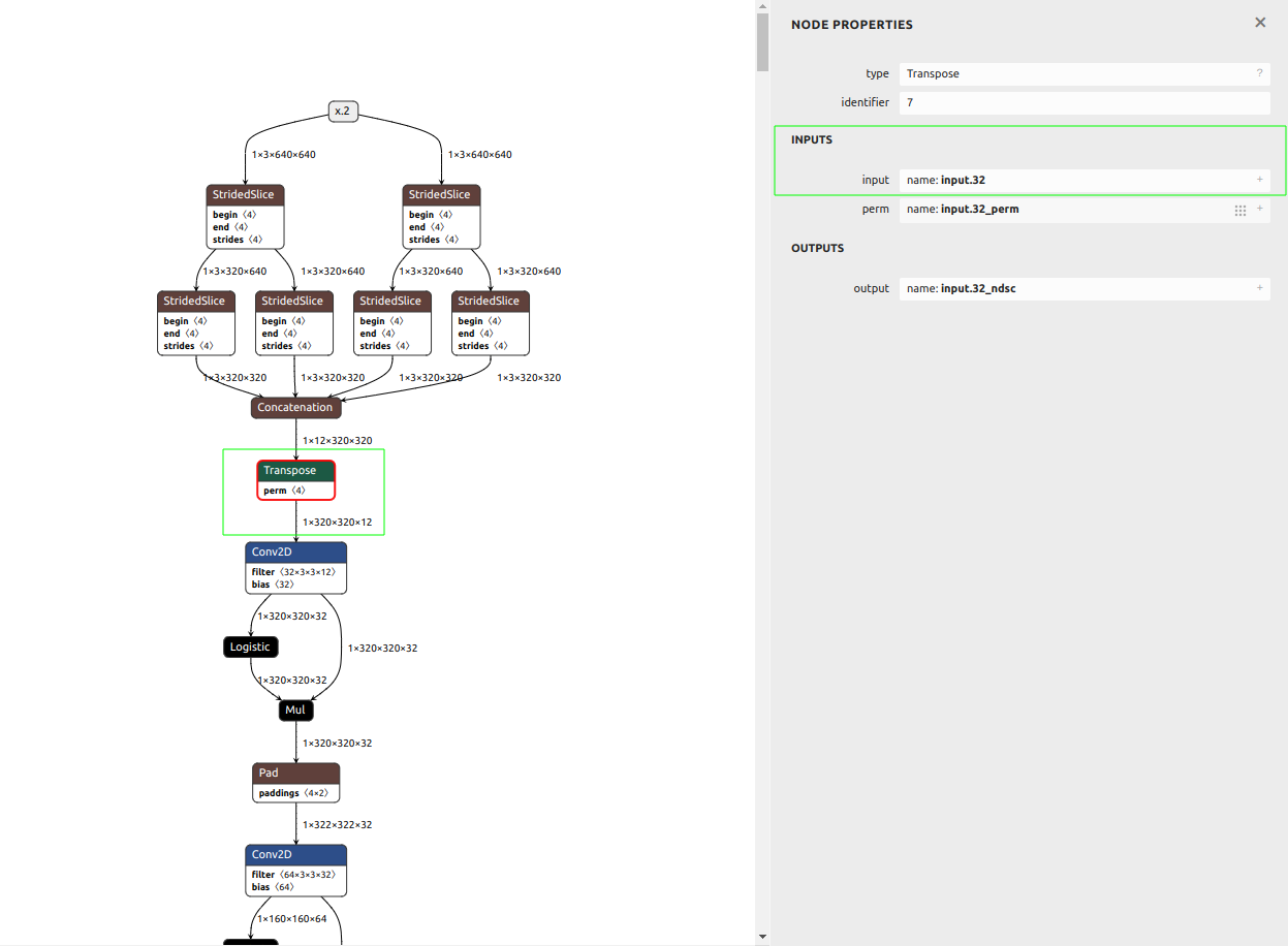 Use a visualization tool such as Netron to inspect: