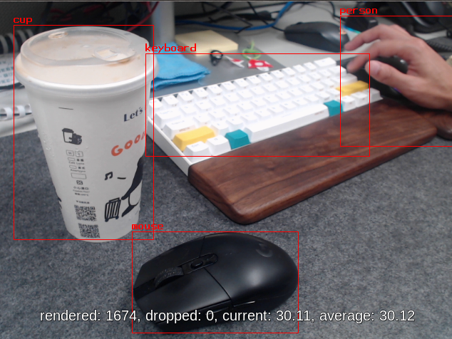 Invoke took 2.537 ms, which indicate the measured inference time.CAM_TYPE=uvc CAMERA_NODE_ID=130 MODE=1 ENGINE=neuronsdk python3 /usr/bin/nnstreamer-demo/run_nnstreamer_example.py \ --app image_classification --cam_type $CAM_TYPE --cam $CAMERA_NODE_ID \ --engine $ENGINE --performance $MODE ... ** INFO: 03:16:01.589: [/usr/bin/nnstreamer-demo/mobilenet_v1_1.0_224_quant.dla] Invoke took 2.537 ms ...