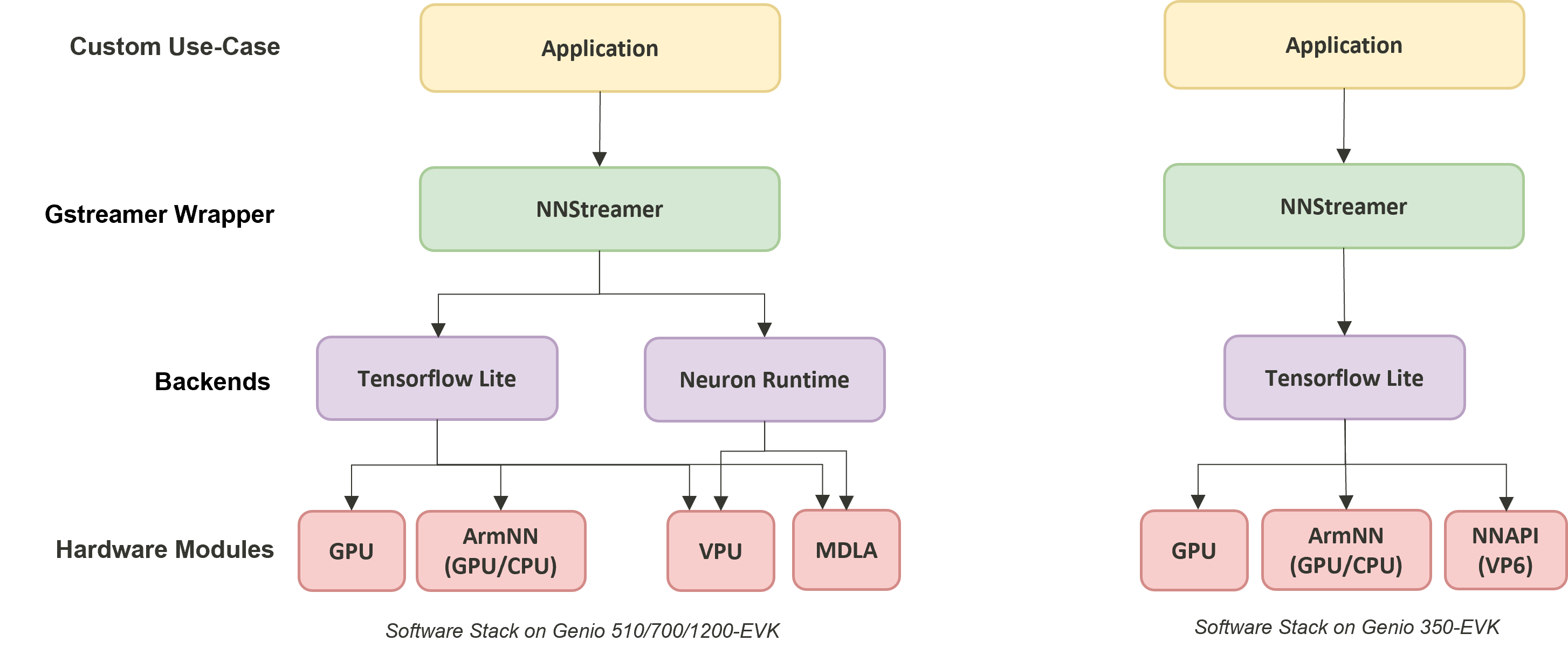 Developers can use tensor_filter_neuronsdk to create GStreamer pipelines that leverage the Genio platform AI accelerators.